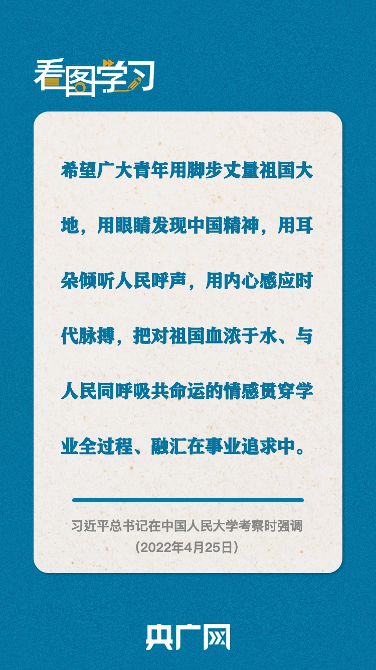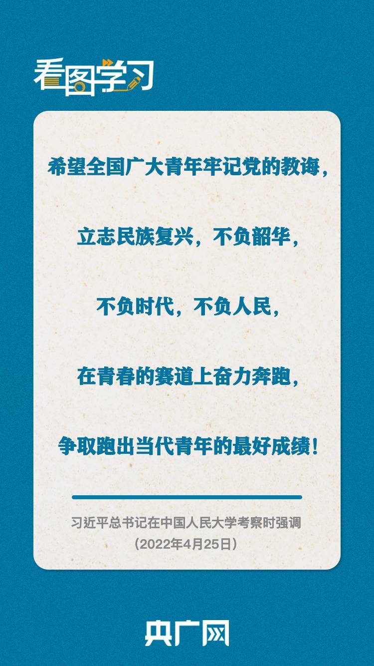 在五四青年节即将到来之际,中共中央总书记、国家主席、中央军委主席习近平4月25日上午来到中国人民大学考察调研。习近平代表党中央,向全国各族青年致以节日的祝贺,向中国人民大学全体师生员工、向全国广大教育工作者和青年工作者致以诚挚的问候。