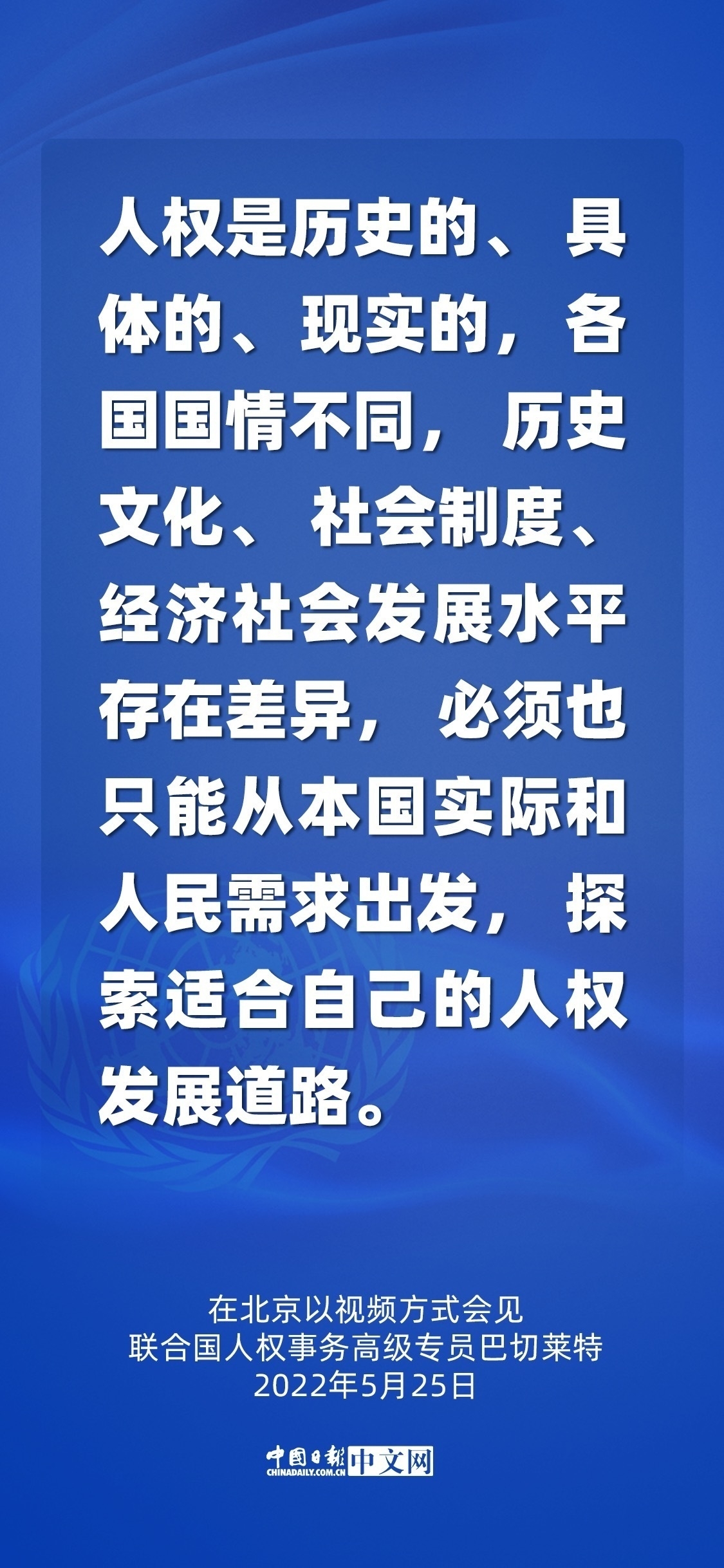习近平对巴切莱特访华表示欢迎,并结合中国历史和文化,深入阐述了事关中国人权事业发展的重大问题,表明了中国党和政府致力于全方位维护和保障人权的原则立场。