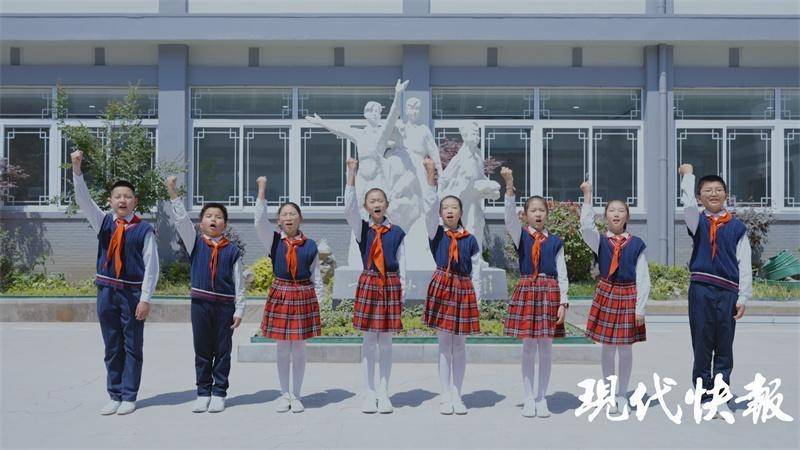 学党史、感党恩、听党话、跟党走 …… 在总书记回信一周年之际,江苏省淮安市新安小学新一届 " 新旅五(8)中队 " 的少先队员们,在校园内的新安旅行团历史纪念馆 " 一群小好汉 " 群雕前,向全国少先队员们发出倡议: