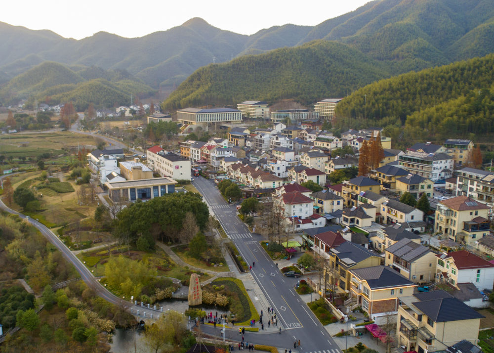 ↑2021年12月3日拍摄的浙江省安吉县余村(无人机照片)。
