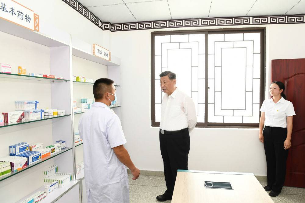 ↑2022年6月8日,习近平步行察看四川省眉山市东坡区太和镇永丰村村容村貌,考察村卫生站,详细了解改善人居环境、做好农村疫情防控等情况。
