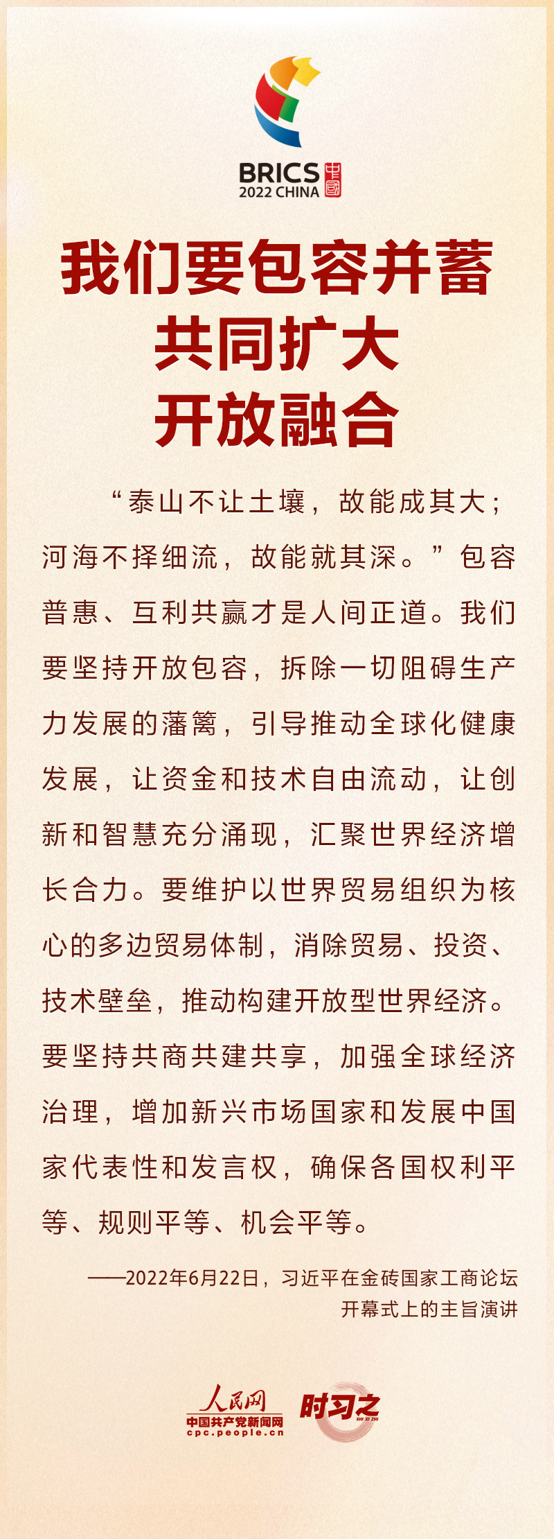 “尽管国际形势风云变幻,但开放发展的历史大势不会变,携手合作、共迎挑战的愿望也不会变。”6月22日晚,国家主席习近平以视频方式出席金砖国家工商论坛开幕式并发表题为《把握时代潮流 缔造光明未来》的主旨演讲,提出金砖合作的四点倡议。