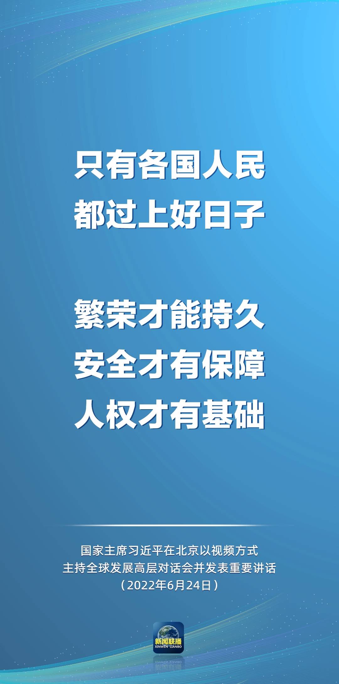 国家主席习近平6月24日在北京以视频方式主持全球发展高层对话会并发表重要讲话。