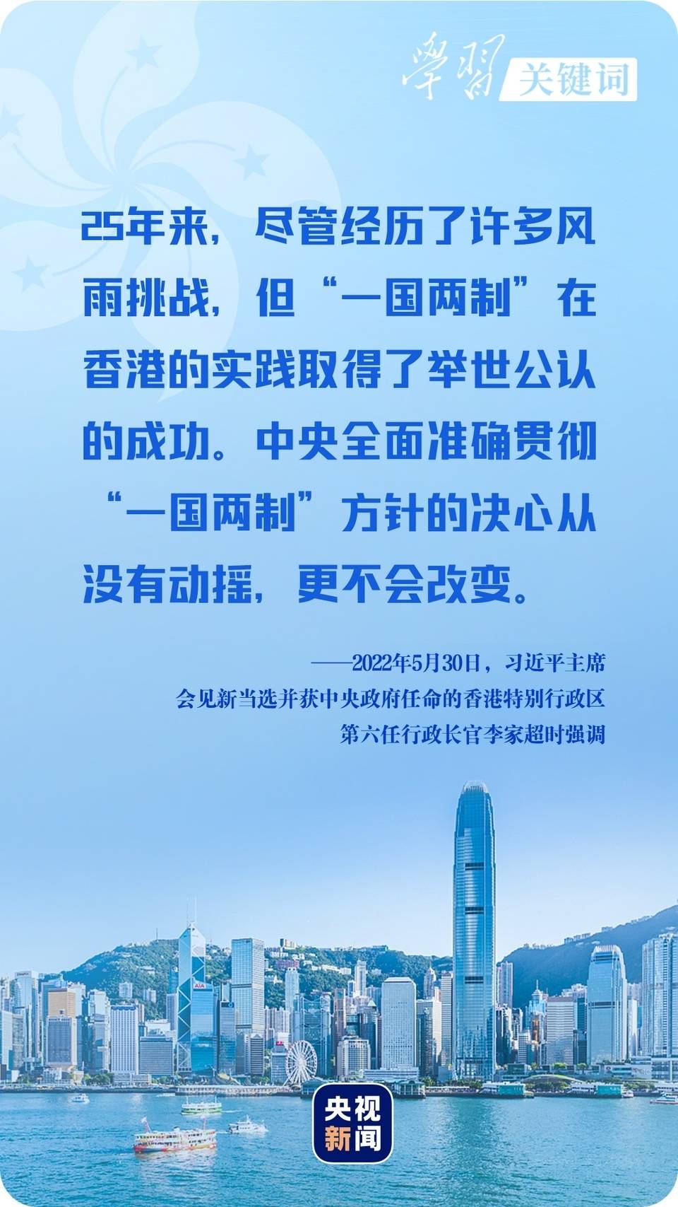 “满足香港居民对美好生活的期待,继续推动香港各项事业向前发展,归根到底是要坚守方向、踩实步伐,全面准确理解和贯彻‘一国两制’方针。”习近平主席态度鲜明。