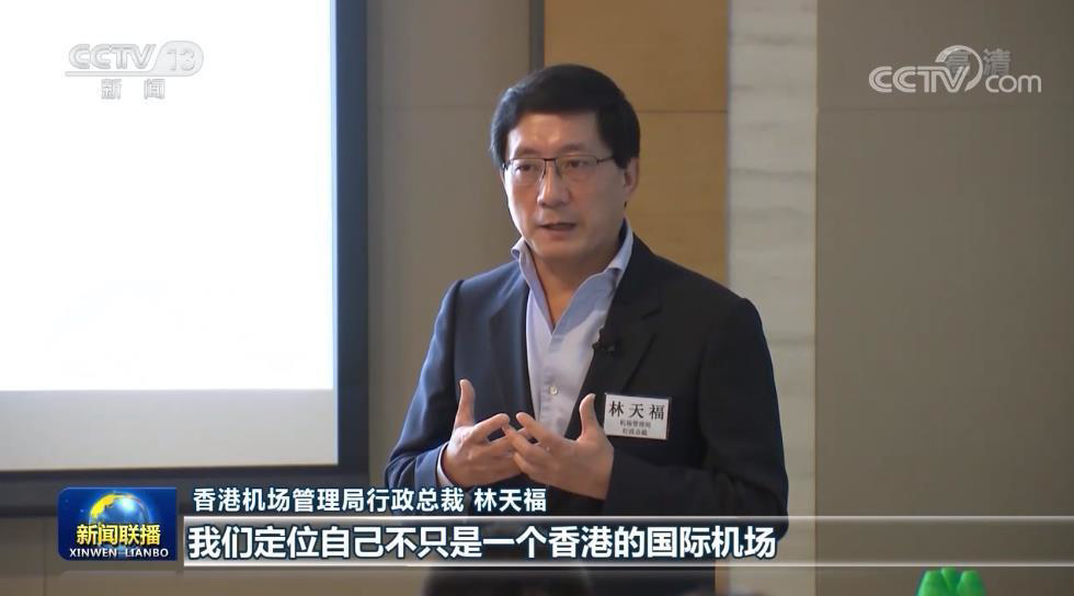 香港机场管理局行政总裁 林天福:我们定位自己不只是一个香港的国际机场,我们是整个(粤港澳)大湾区的一个国际机场,我们是我们国家的一个重要的国际航空枢纽。
