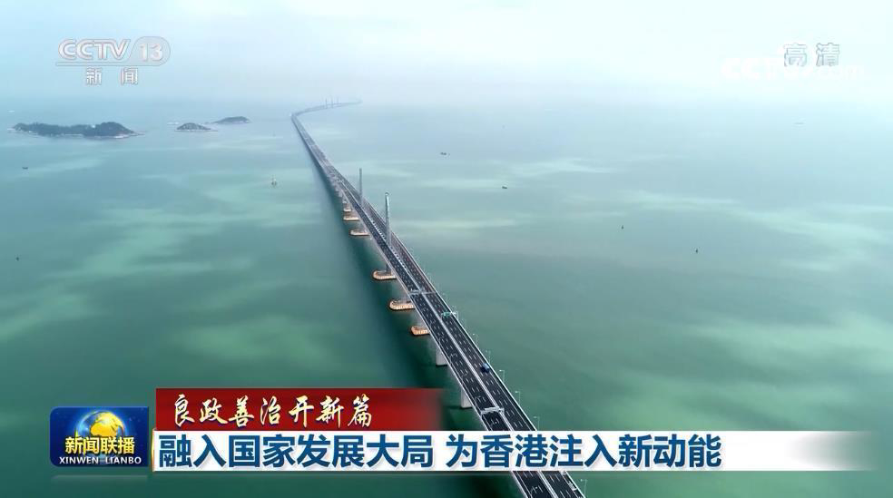 五年来,以粤港澳大湾区发展为机遇,香港正加速融入国家发展大局,覆盖大湾区城市的立体交通网络越织越密。世界上最长的跨海大桥——港珠澳大桥穿越伶仃洋,将香港、广东珠海、澳门紧紧相连。广深港高铁香港段通车,将香港和内地58个城市直接连通。跨境基础设施相继建成使用,推动粤港澳大湾区形成“一小时生活圈”,让香港和祖国的互联互通从未像现在这样紧密。