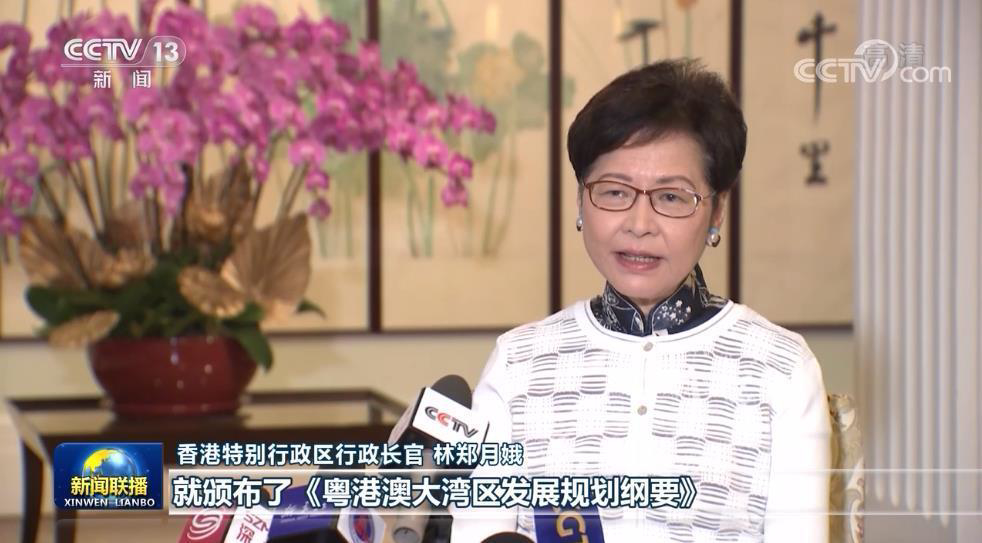 香港特别行政区行政长官 林郑月娥:这五年来最让人兴奋的真是粤港澳大湾区。在国家主席习近平的亲自见证下,我们就签了一个粤港澳大湾区发展的框架。到2019年2月份就颁布了《粤港澳大湾区发展规划纲要》。中央为我们提供了很好的支持,促进人流、物流、资金流的措施。香港未来要好,必须要成为国家发展的一个部分。