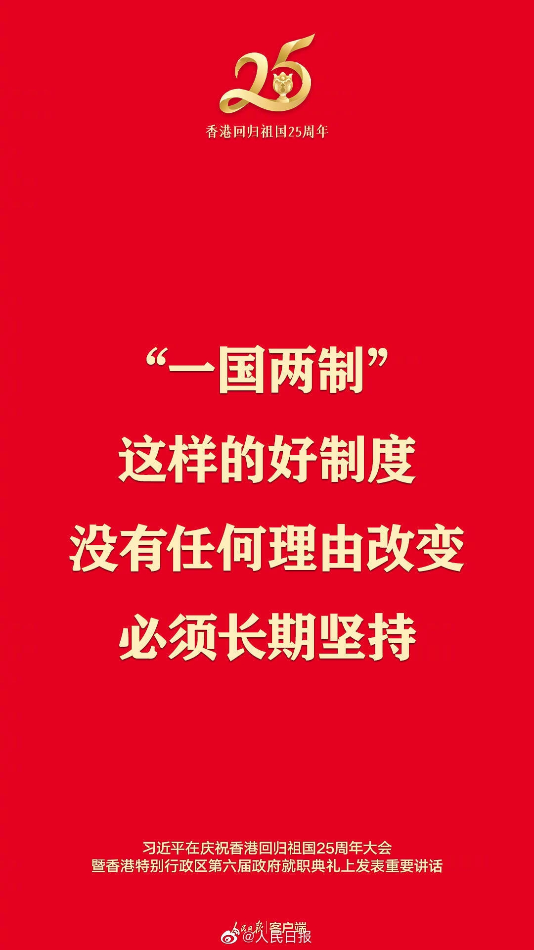 #香港不能乱也乱不起#、#中央政府所做的一切都是为了港澳同胞好#、把香港特别行政区管治权牢牢掌握在爱国者手中……今天,习近平主席在庆祝香港回归祖国25周年大会暨香港特别行政区第六届政府就职典礼上发表重要讲话。收藏学习金句↓↓