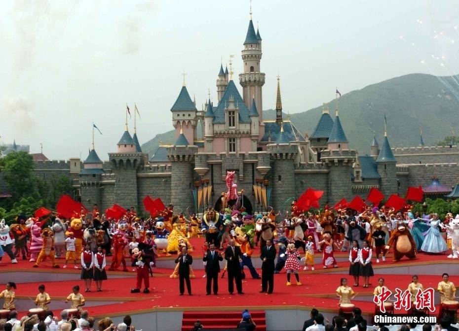 2005年9月12日,香港迪士尼乐园开幕庆典在睡公主城堡外举行。中新社记者 赵振清 摄