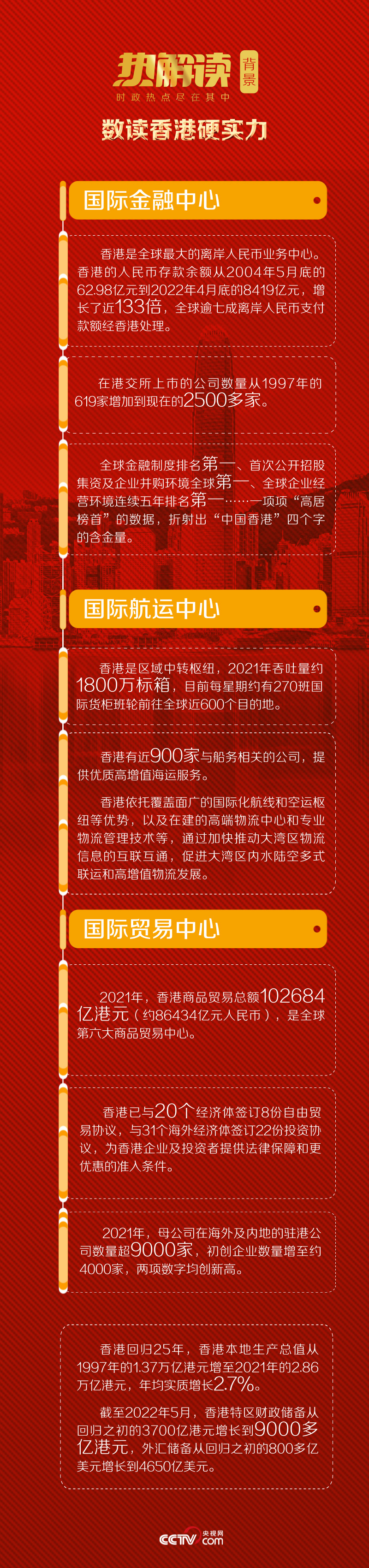 无论是始终保持国际金融、航运、贸易中心地位,还是不断巩固发展传统优势产业;无论是经济发展“蛋糕”越做越大,还是多年被众多国际机构评选为全球最自由经济体和最具竞争力的地区之一……香港回归祖国后继续保持原有优势,并在“一国两制”方针下,加快融入国家发展大局,不断续写发展新故事、繁荣新传奇。