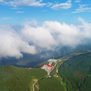位于宁夏固原市隆德县境内的六盘山红军长征纪念亭(2018年8月29日摄,无人机照片)。新华社记者 王鹏 摄