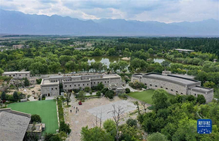 游客在宁夏志辉源石酒庄参观游玩(2020年7月22日摄,无人机照片)。新华社记者 冯开华 摄