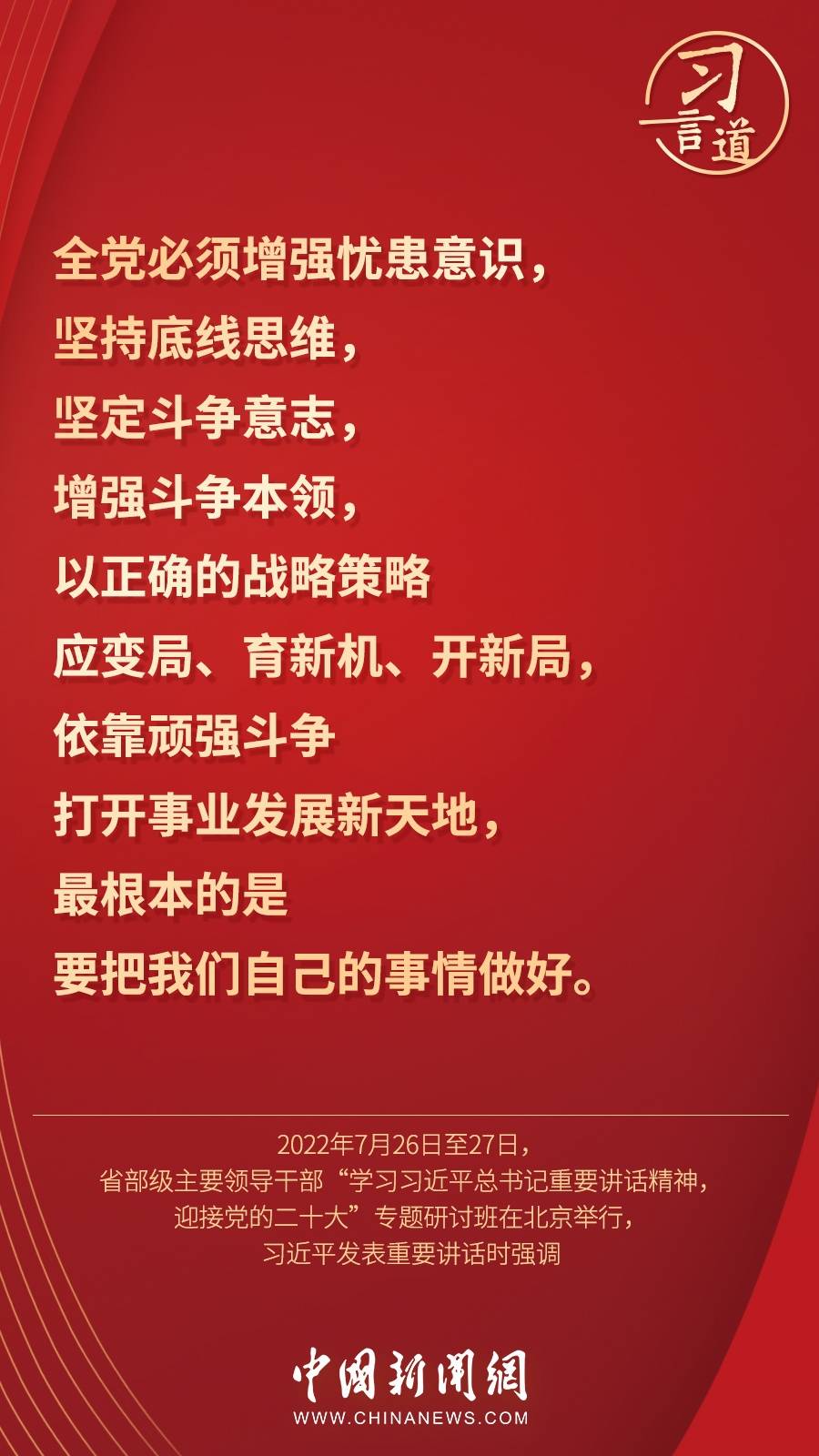 7月26日至27日,习近平总书记在省部级主要领导干部专题研讨班上发表重要讲话时指出,最根本的是要把我们自己的事情做好。十八大以来,习近平曾多次谈到集中精力办好自己的事情,强调这是我们应对各种风险挑战的关键。
