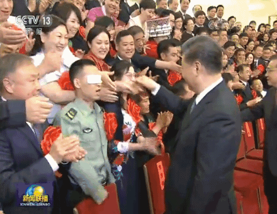 2019年5月16日,第六次全国自强模范暨助残先进表彰大会在人民大会堂举行。雷鸣般的掌声中,习近平主席在双眼蒙着厚厚纱布的杜富国面前停下,轻轻拍了拍他的肩膀。