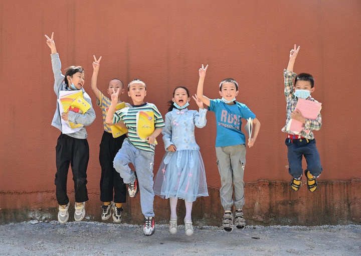 这是2022年6月24日拍摄的下党村希望学校的小学四年级学生。下党村希望学校集合了幼儿园、小学和初中。新华社记者周义摄