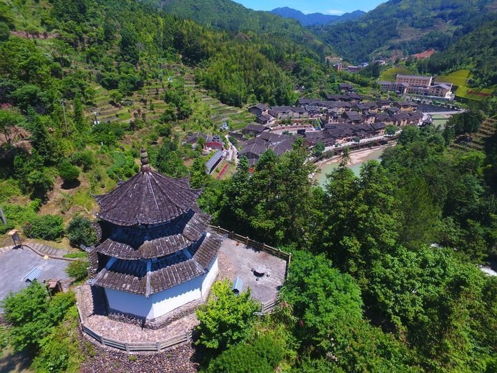 这是2022年6月23日拍摄的下党村文昌阁(无人机照片)。新华社记者周义摄
