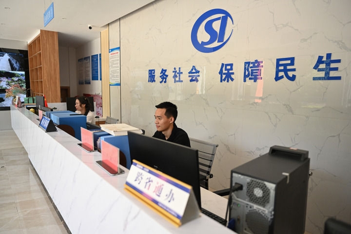 2022年6月24日,工作人员在位于下党村的乡镇便民服务中心大厅里办公。新华社记者周义摄