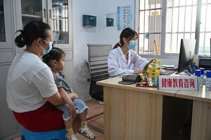 2022年6月24日,村民在位于下党村的乡镇卫生院进行健康咨询。新华社记者周义摄