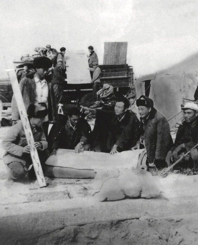 20世纪60年代,焦裕禄(前中)在兰考沙区现场组织抗灾。(新华社发)