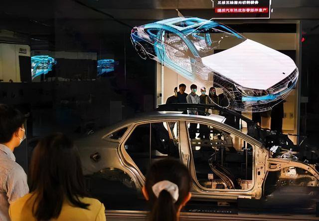 △武汉光谷,用于汽车制造的三维五轴激光切割焊接装备样品进行展示。
