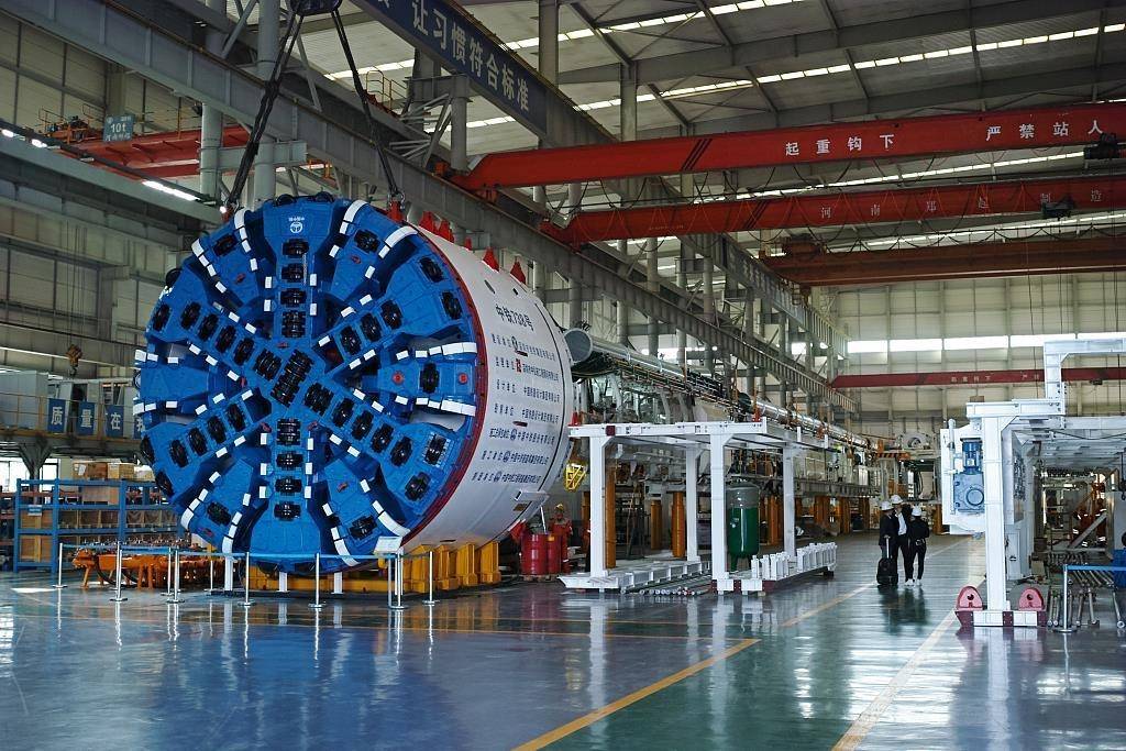 中铁工程装备集团有限公司盾构总装车间,所有设备开足马力,多条产线一派繁忙。