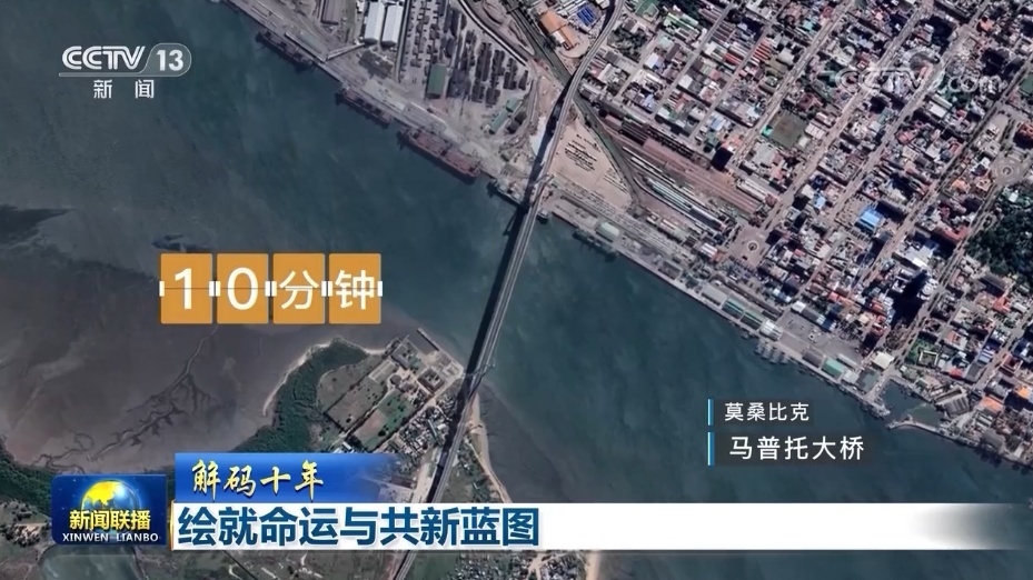 莫桑比克首都马普托,东非地区最重要的港口之一,一座大桥飞架马普托湾,将两侧区域的连接时间从2小时缩短为10分钟。这座非洲第一大悬索桥是“中国造”。