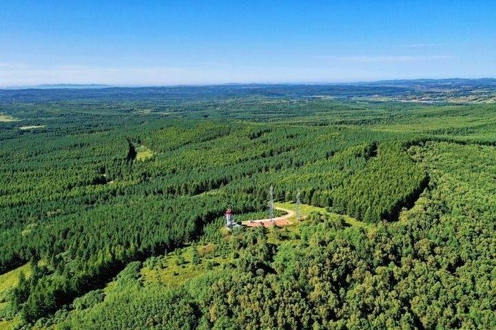 这是2021年8月23日拍摄的河北塞罕坝机械林场内的望海楼(无人机照片)。三代塞罕坝林场人50多年坚持植树造林,用汗水浇灌出绿波涌动的百万亩人工林海。 新华社记者 牟宇 摄