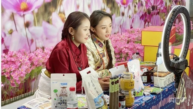 28日,中国网络文明大会互联网企业展区,主播正在直播带货(央广网记者 周思杨 摄)