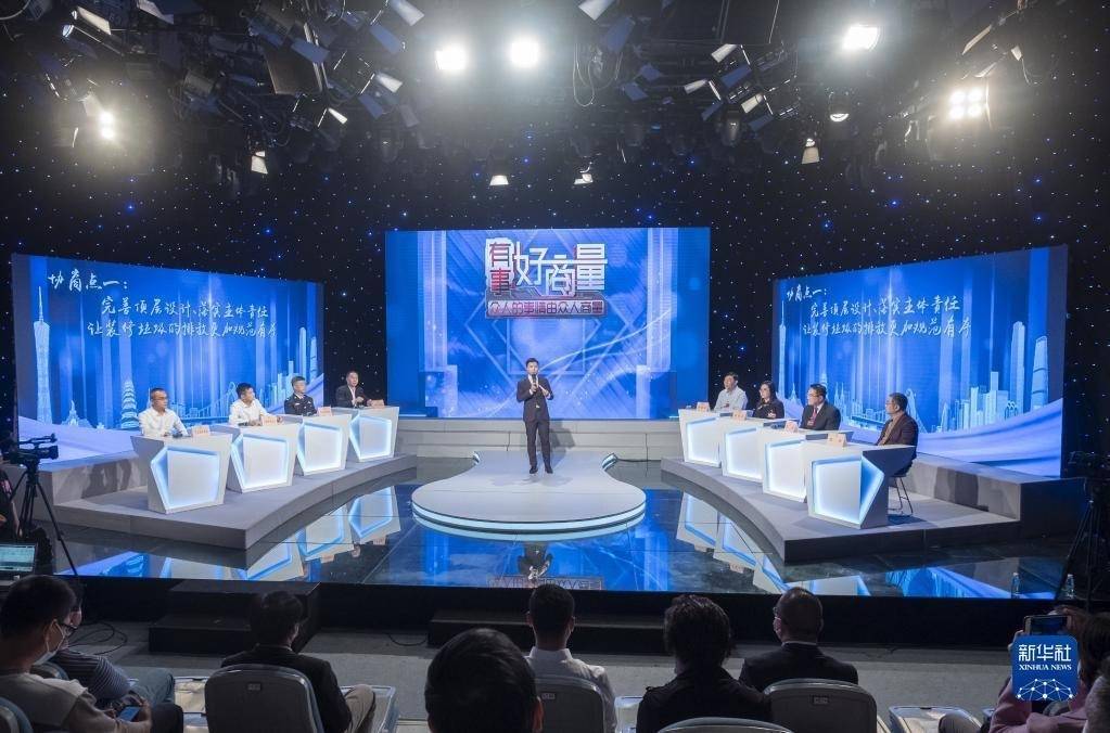 政协委员、政府部门代表、物业代表等在广州市政协“有事好商量”民生实事协商平台,围绕加强装修垃圾管理议题展开协商(2021年11月19日摄)。新华社发(庄小龙 摄)