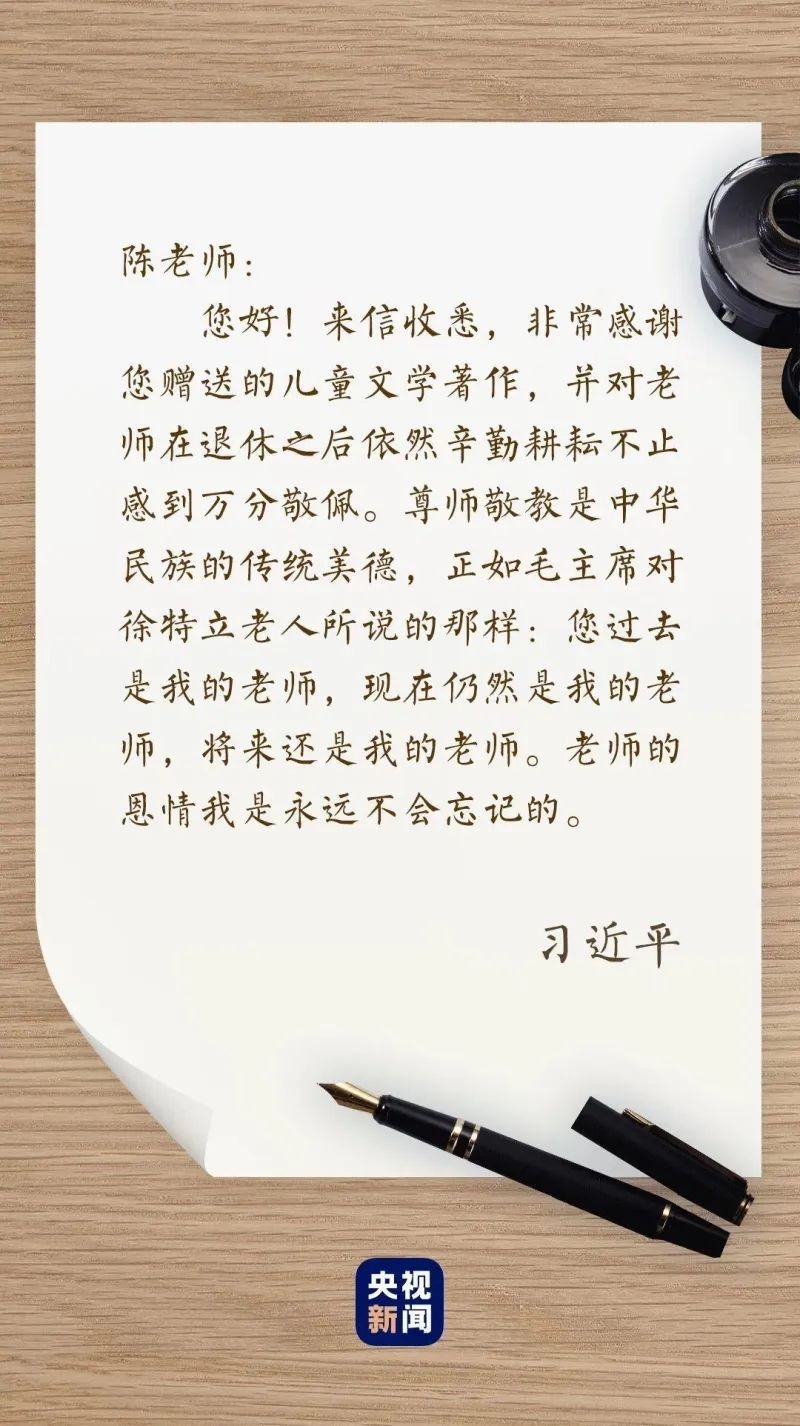 这封回信,饱含着习近平对恩师深沉而炽热的情感,对教师群体的由衷敬重。