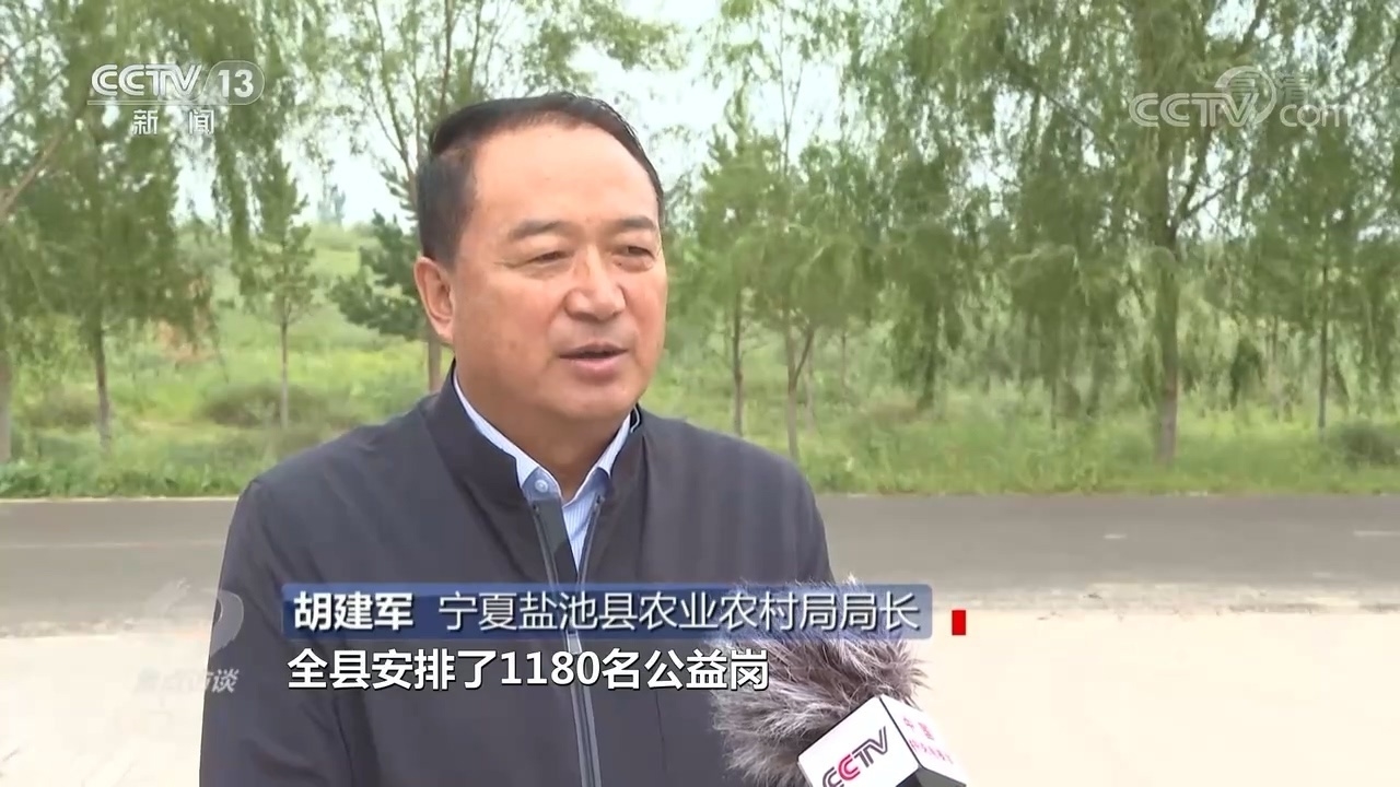 宁夏盐池县农业农村局局长胡建军说:“在生态补偿方面,通过生态护林员的安置,全县安排了1180名公益岗,每人一年1万块钱的工资性收入,为脱贫摘帽奠定了坚实基础。”