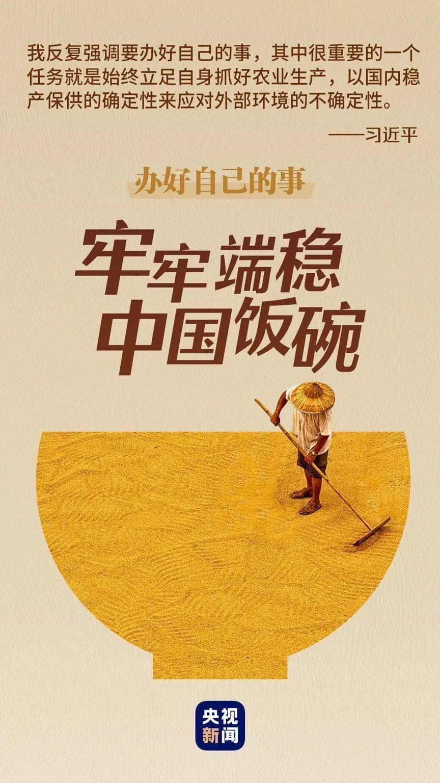 中国粮食,中国饭碗。习近平总书记强调:“中国人的饭碗任何时候都要牢牢端在自己手中,我们的饭碗应该主要装中国粮。”