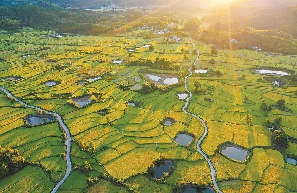 2022年8月22日,安徽旌德县兴隆镇三山村万亩梯田里水稻长势喜人,丰收在望。
