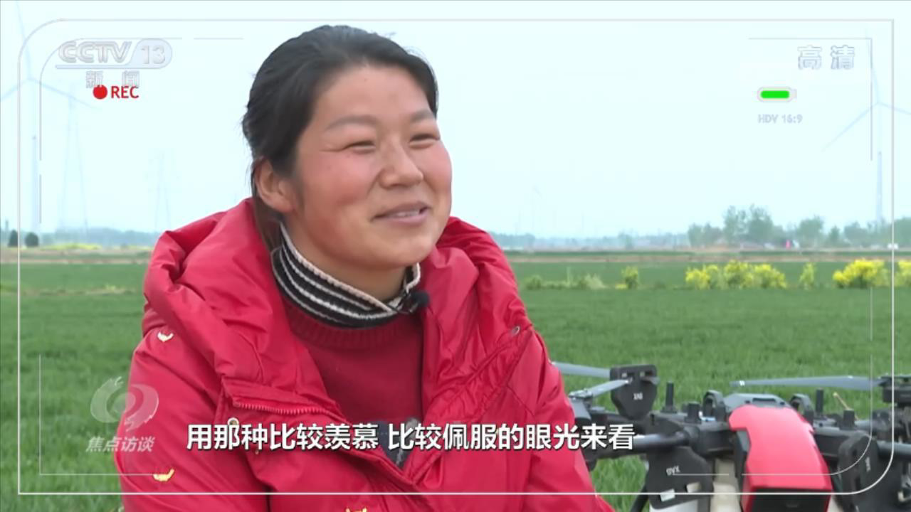 植保无人机飞手李新玲说:“周边这多少个村庄,我们算是第一个入手无人机的。好多亲戚朋友,用那种比较羡慕、比较佩服的眼光来看,当时我心里面感觉还是挺开心的。”