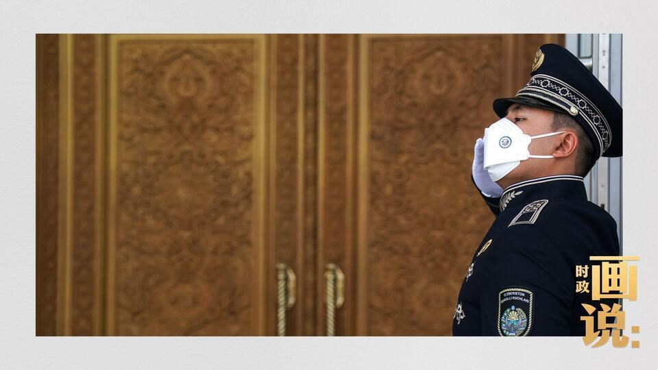当地时间9月15日上午,乌兹别克斯坦总统米尔济约耶夫在撒马尔罕国际会议中心北广场举行隆重欢迎仪式,欢迎习近平主席到访。