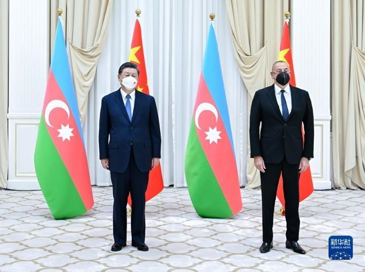 当地时间9月15日下午,国家主席习近平在撒马尔罕国宾馆会见阿塞拜疆总统阿利耶夫。新华社记者 翟健岚 摄