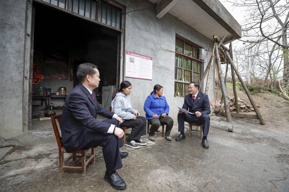 重庆市巫溪县检察院联合陕西省镇坪县检察院组成的跨区域联合行动小组在鸡心岭地区给辖区居民宣讲林业生态保护知识(2020年4月22日摄)。新华社记者 黄伟 摄