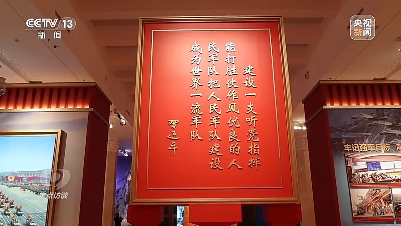 新时代国防和军队建设成就展上,1400多件文物实物、630多张照片、90多型套武器装备模型,向观众述说了十年间新时代国防和军队建设成就。十年,我们的强国强军梦想,正在大跨步地实现。