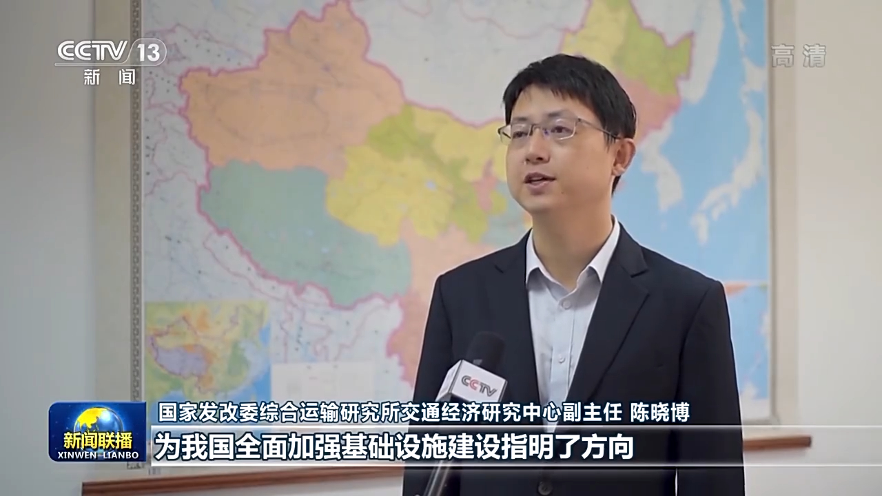 国家发改委综合运输研究所交通经济研究中心副主任 陈晓博:总书记的重要讲话为我国全面加强基础设施建设指明了方向。党的十八大以来,我们坚持适度超前投资,推进基础设施成网增效,我国传统基础设施整体水平实现了跨越式提升,初步形成了具有超大规模优势的基础设施网络。