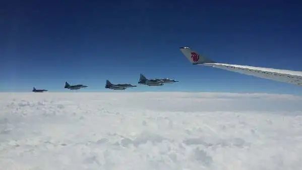 在中国国家主席习近平收到的国礼中,有一张特殊的“合影”——1架印有五星红旗的专机身后,8架“枭龙”战机分列两侧伴飞护航,湛蓝苍穹下,如雁阵翱翔。