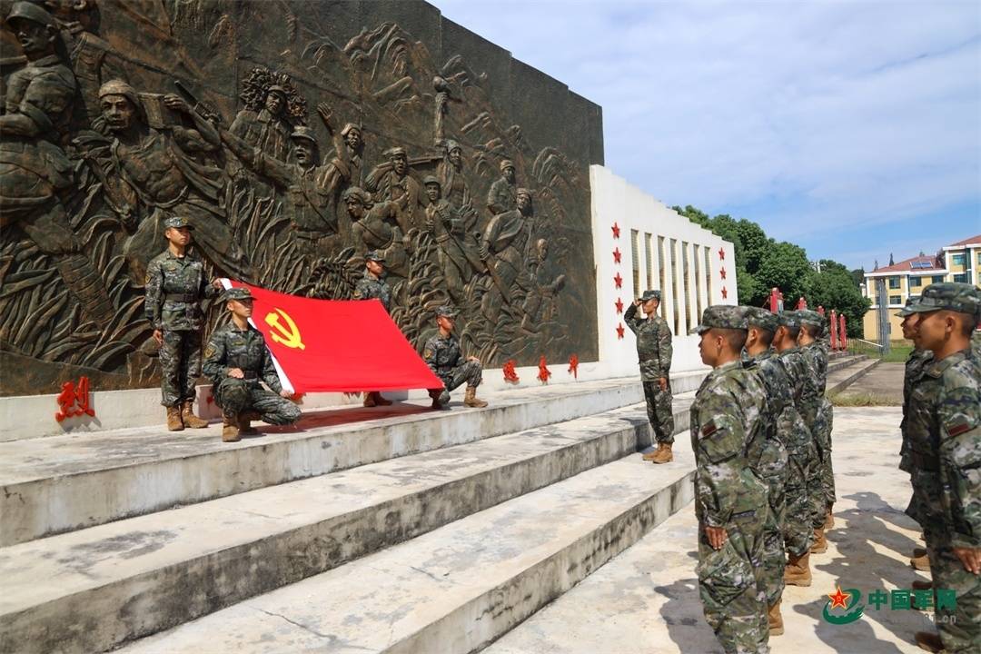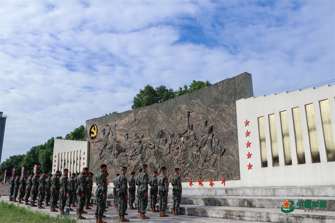 武警第二机动总队某支队官兵结合烈士纪念日,开展“缅怀革命先烈,争做‘四有’军人”主题教育活动。官兵们在营区革命烈士纪念墙前整齐列队,满怀无比崇敬之心,向革命烈士致敬、默哀。