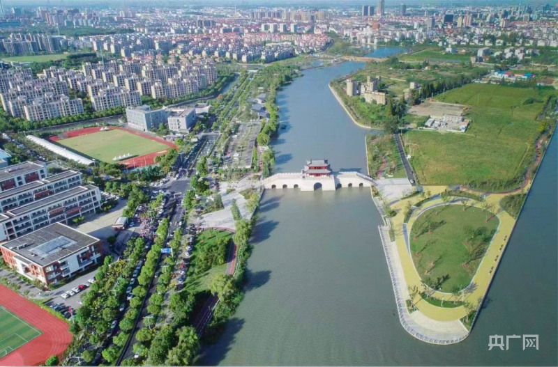 青浦环城水系的标志性景观建筑水城门连接漕河两岸(央广网记者 韩晓余 摄)