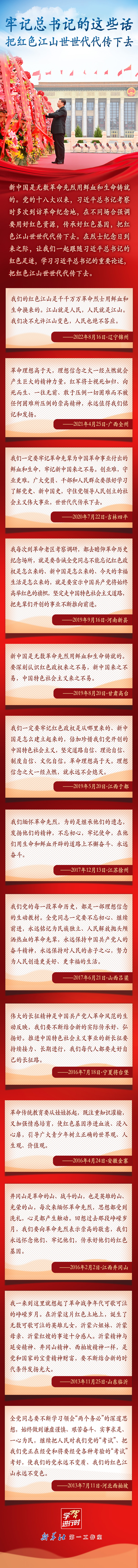学习进行时丨牢记总书记的这些话,把红色江山世世代代传下去