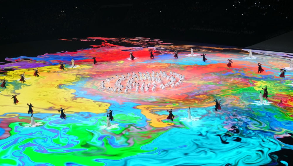 2022年3月4日晚,演员在北京2022年冬残奥会开幕式上表演。新华社记者 牟宇 摄