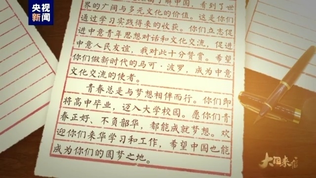 锦书云中来,尺牍传深情,开启这期大国来信。2019年3月习近平主席给意大利罗马国立住读学校师生回信。习主席在信中说:“愿你们青春正好、不负韶华,都能成就梦想。欢迎你们来华学习和工作,希望中国也能成为你们的圆梦之地。”三年过去了,当年的中学生,现在已经是大学生,也有了自己的职业梦想。来看他们给我们带来的故事。