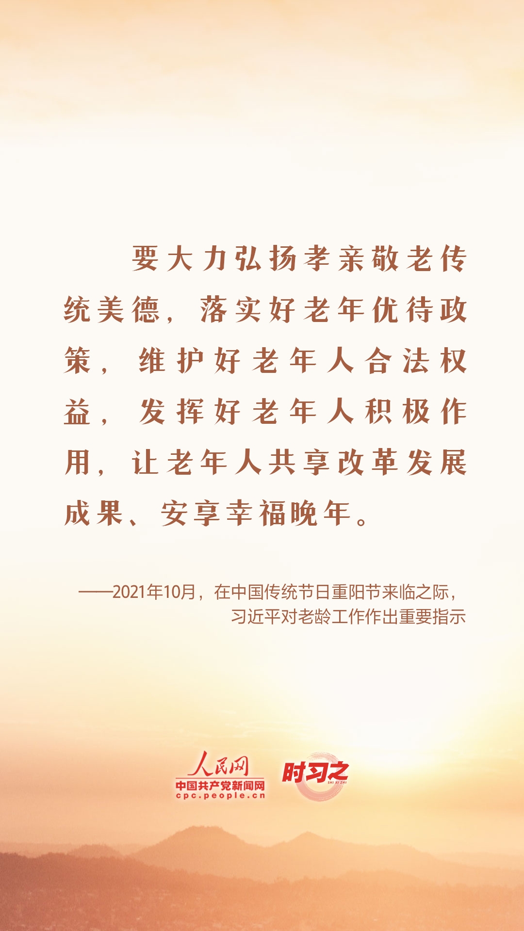 今天是九九重阳节,也是我国法定的第十个“老年节”。尊老敬老是中华民族的传统美德,爱老助老是全社会的共同责任。习近平总书记历来十分关心老年人,重视老龄工作,在多个场合作出重要论述,亲身践行尊老爱老优良传统,引领全社会形成良好风尚。