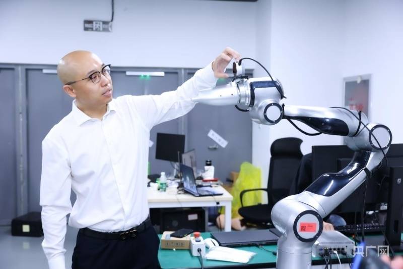 林杰介绍正在研发中的采样机器人(央广网发 王克伟 摄)