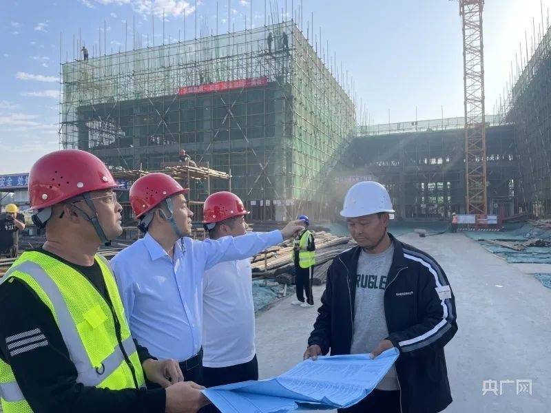 张留民(左二)在电源器件生产项目建设现场(央广网发 殷吉星 摄)