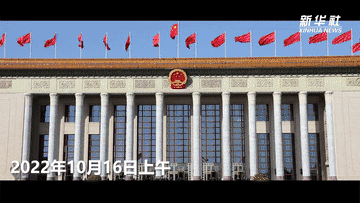 2022年10月16日上午,中国共产党第二十次全国代表大会在人民大会堂开幕。