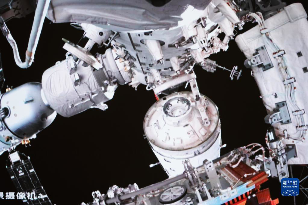 2022年9月30日在北京航天飞行控制中心拍摄的问天实验舱转位画面。这是问天实验舱与天和核心舱分离,采用平面转位方式进行转位。新华社记者 郭中正 摄